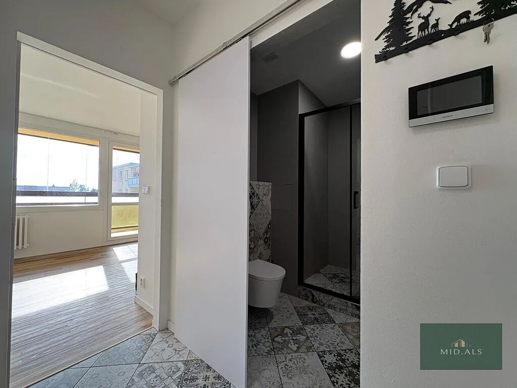 Byt prošel v roce 2023 kompletní rekonstrukcí včetně rozvodů, je zde zděné koupelnové jádro se sprchovým koutem a závěsným WC, praktická chodba s vestavnou skříní, posuvné dveře do pokoje s kuchyňským koutem, vše nové. Z pokoje je vstup na zasklenou lodžii ( 7m2 ) směřující na jižní stranu, takže byt je celý den krásně prosvětlený.