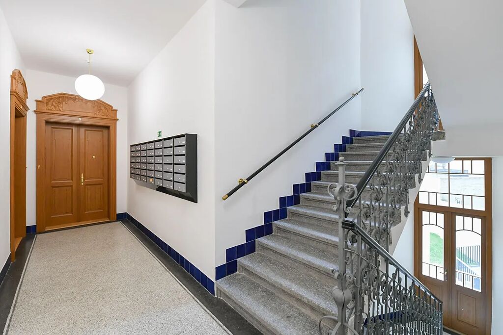 Nově zrekonstruovaný stylový byt 2+kk ( 1 ložnice, 1 koupelna), s klimatizací, o celkové podlahové ploše 43,9m2, je situovaný v 1.patře (2.NP) reprezentativní budovy s výtahem a se společnou zahradou v domě k užívání, se nachází v oblíbené lokalitě na Praze 10 Vršovice s veškerou občanskou vybaveností.