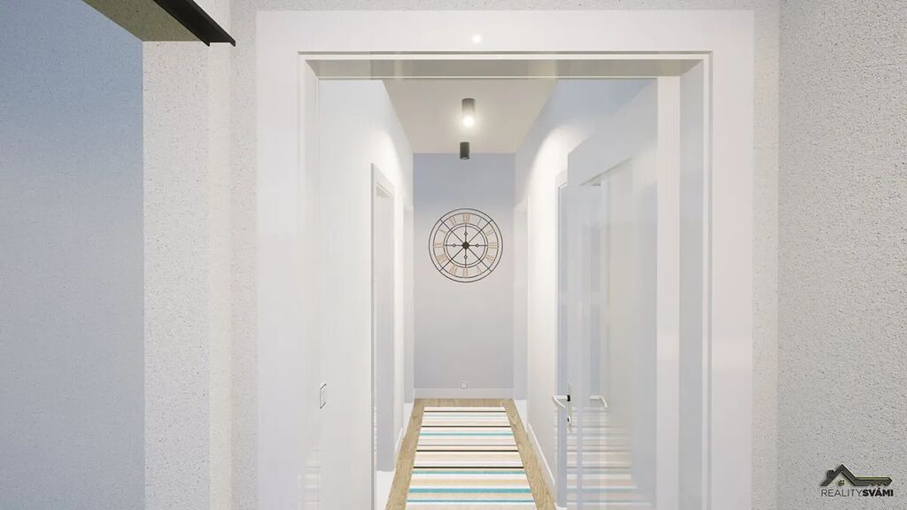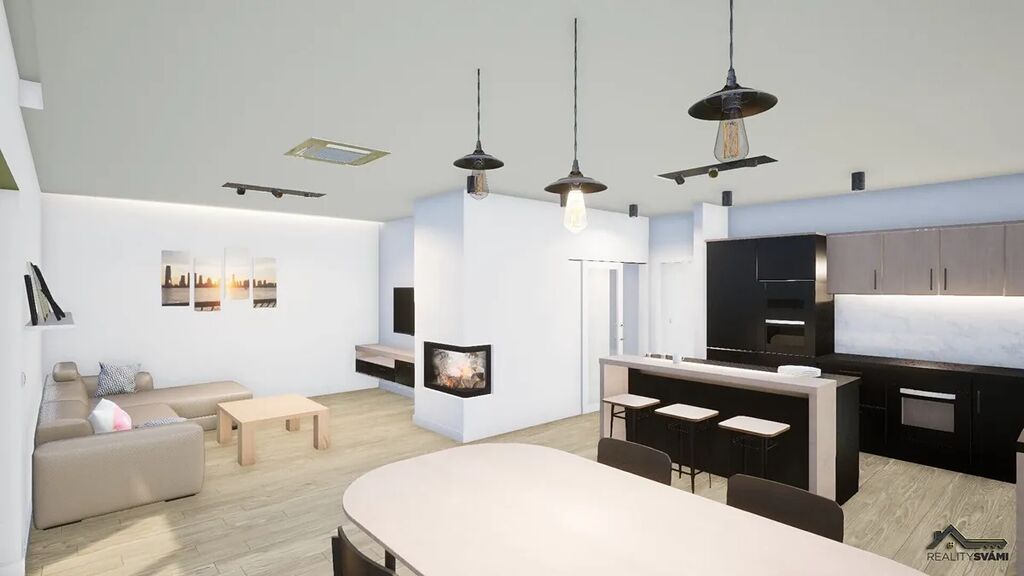 Interiér je navržen s důrazem na funkčnost a komfort moderního bydlení. Prostorný obývací pokoj s kuchyňským koutem plynule navazuje na soukromou zahradu, která nabízí klid a dostatek soukromí.
