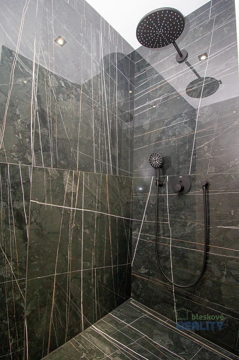 Topení je kombinované – podlahové a radiátory, připravena je i instalace pro tepelné čerpadlo a klimatizaci. Samozřejmostí jsou elektrické předokenní rolety a nabíječka pro elektromobil.