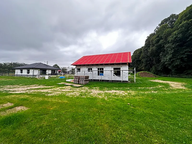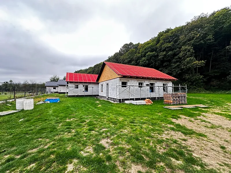 Jedná se o jednopodlažní zděný (tvárnice Porfix) rodinný dům s dispozicí 4+kk se sedlovou střechou pokrytou betonovou taškou. Dům bude kompletně vybudovaný, včetně finálního dokončení mimo kuchyňskou linku. V domě budou mimo jiné plastová okna s trojsklem, podlahové vytápění napojené na tepelné čerpadlo, komín s příslušenstvím, solární ohřev TUV s akumulačním zásobníkem (300 l), atd. Půdní prostor je pochozí s úložným prostorem cca 33 m2 s rozvodem elektro a střešním oknem.