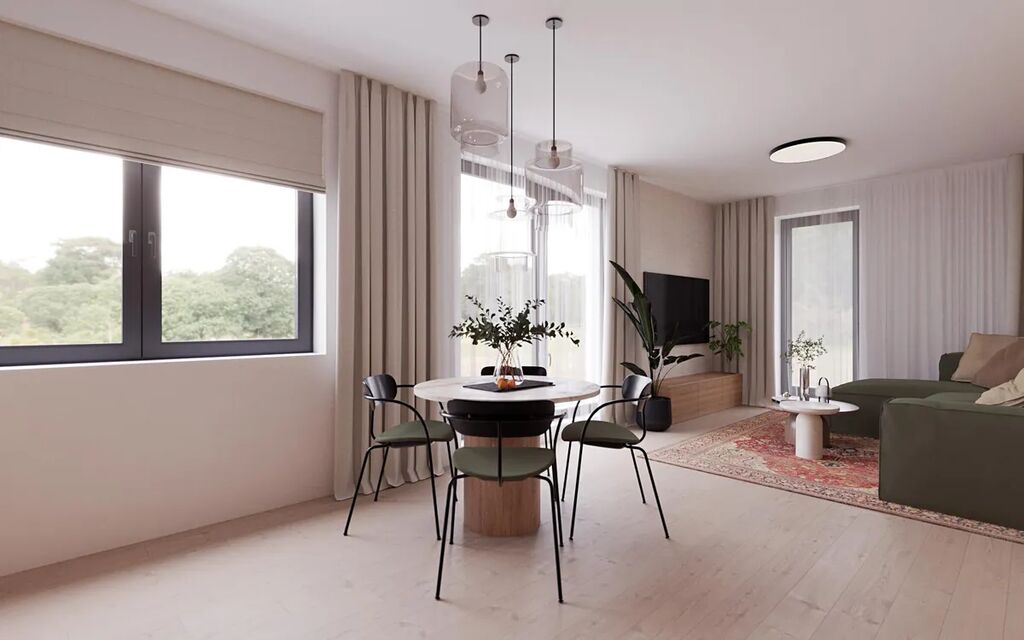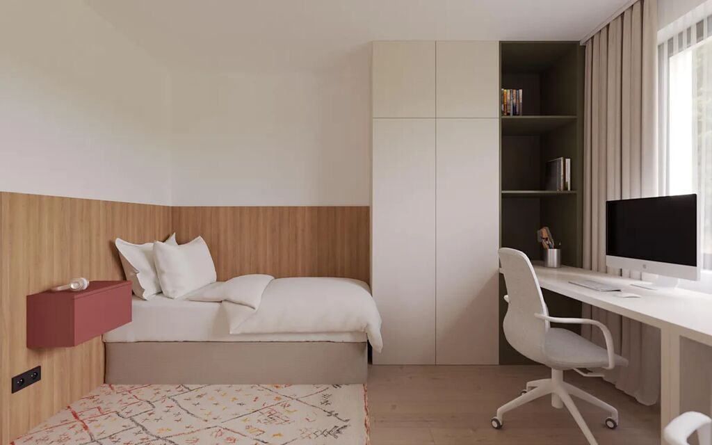 Byt je vybaven ve vysokém standardu dřevěné podlahy, příprava na chytrou domácnost a další nadstandardní prvky zajišťují komfortní a bezstarostné bydlení.