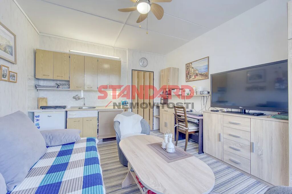 Byt tvoří hlavní pokoj s kuchyňskou linkou, předsíň s úložným prostorem a koupelna se sprchovým koutem a toaletou. Prostor je útulný a světlý, ihned obyvatelný, s možností drobných úprav dle vašich představ.