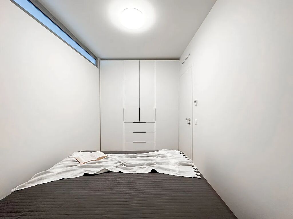 V bytě jsou vestavěné skříně, koupelna s toaletou, pračka se sušičkou, manželská postel s úložným prostorem, rozkládací gauč, TV, kuchyňská linka (lednice, trouba, myčka, indukční deska, digestoř). Byt má dřevěná francouzská okna. Je zde podlahové vytápění, rekuperace, klimatizace a venkovní žaluzie. Dětský pokoj či pracovna zůstává nevybavený, abyste si pokoj přizpůsobili dle vlastních představ.