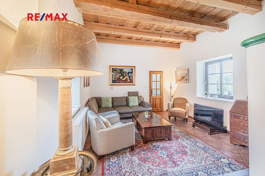 Nabízíme Vám ke koupi rodinný dům v rámci uzavřeného komplexu obytných a hospodářských budov s celkovou užitnou plochou 681 m2 a pozemkem o výměře 3572 m2 v obci Kostelní Střimelice (u Mnichovic).