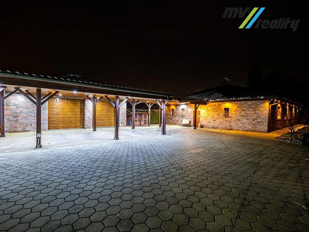 U domu je garáž pro 2-3 vozidla (60 m2), která je propojena s domem zastřešením.