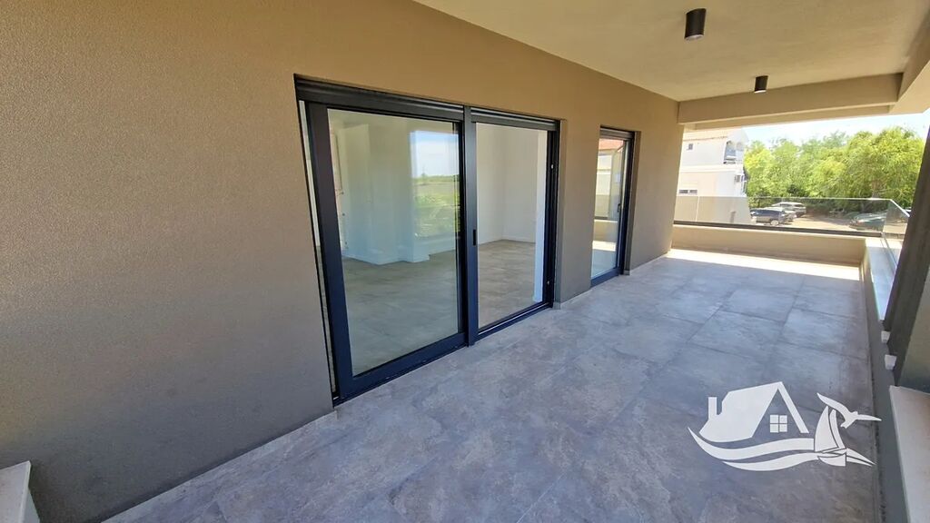 Apartmán se nachází v prvním patře moderní budovy s celkem osmi bytovými jednotkami. Dispozici tvoří vstupní chodba, koupelna, dvě ložnice, hlavní ložnice s vlastní koupelnou, prostorná kuchyně s jídelnou a obývacím pokojem a zastřešená terasa s výhledem na moře. Celková čistá obytná plocha činí 108,68 m², a k bytu dále náleží dvě parkovací místa před budovou, což zvyšuje celkovou užitnou plochu na 113,95 m².