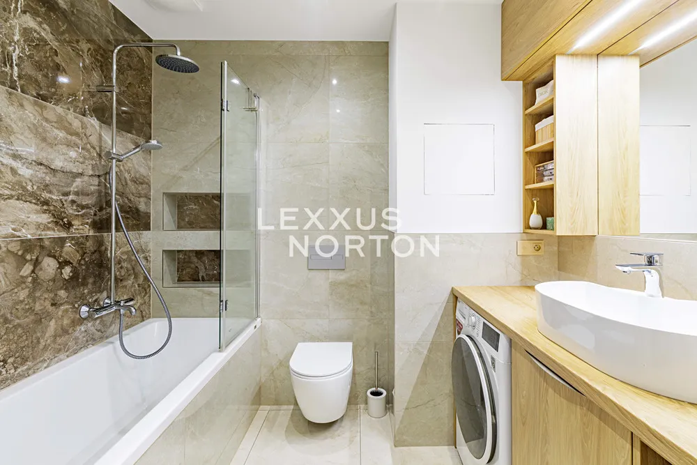 V bytě je k dispozici plně vybavený kuchyňský kout se spotřebiči, který byl navržen na míru, tak aby elegantně doplnil interiér bytu. Byt prošel rozsáhlou rekonstrukcí v roce 2024, kdy kromě kuchyňského koutu, jsou v bytě nyní nové podlahy, obklady a dlažba na chodbě a v koupelnách.