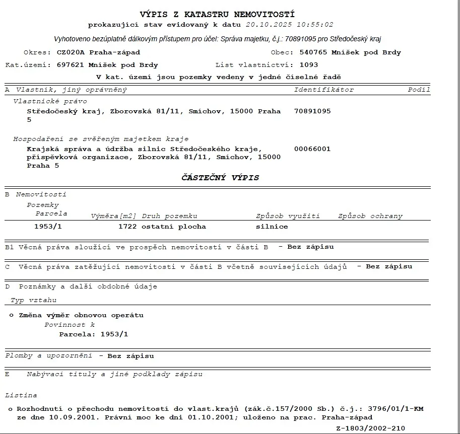 Informace o nemovitosti podá: Jindřich Mach, referent správy pozemků Krajské správy a údržby silnic Středočeského kraje, p.o. , tel. 702 265 035, e-mail: jindrich.mach@ksus.cz