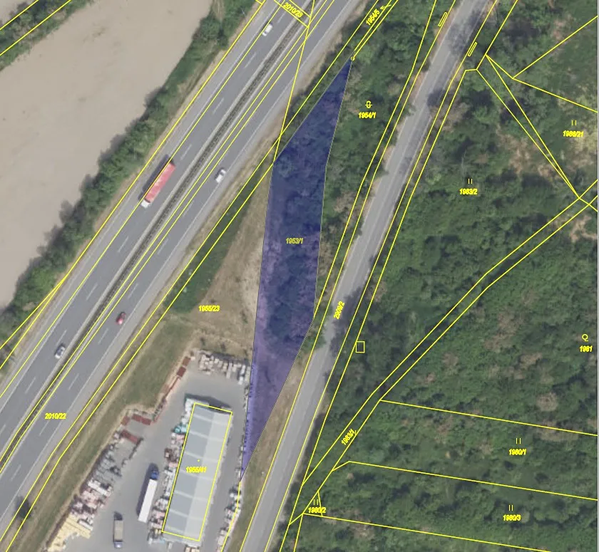 Nemovitost je situována v k.ú. Mníšek pod Brdy, obec Mníšek pod Brdy, okres Praha-západ. Pozemek není rovinný a nachází se mezi dálnicí D4 a silnicí, ke kterým těsně přiléhá, přičemž část se nachází v ochranném pásmu dálnice. Pozemek je ve skutečnosti využíván jako trvalý travní porost (zeleň) a je územním plánem určen jako plocha ZO – zeleň ochranná a izolační.