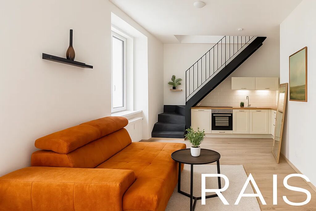 Byt je situován ve vyšším podlaží domu, který prošel kompletní revitalizací – objekt má novou fasádu, nová okna a působí reprezentativním dojmem jak zvenčí, tak uvnitř. Samotná jednotka prošla pečlivou modernizací s důrazem na kvalitu použitých materiálů, nadčasový architektonický výraz a maximální funkčnost. Interiér působí vzdušně a otevřeně, velkorysá okna zajišťují dostatek přirozeného světla a elegantní schodiště propojuje obě podlaží v harmonickém celku. Koupelna je vybavena moderním sprchovým koutem a toaletou, přičemž veškeré rozvody a přípojky jsou připraveny pro instalaci kuchyňské linky dle individuálních představ budoucího majitele. Byt je rovněž nachystán na instalaci klimatizace, přičemž po dohodě s majitelem je možné její dodatečné zajištění za doplatek.