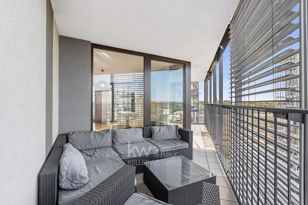 Byt je designově i funkčně promyšlený do posledního detailu. Díky důmyslnému uspořádání nabízí dostatek úložných prostor a působí mimořádně vzdušně a elegantně. Dominantou bytu je světlý obývací prostor s kuchyňským koutem, který je vybaven moderní linkou a kvalitními spotřebiči. Z obývací části je přímý vstup na prostornou terasu 35 m², jež nabízí klidné místo k odpočinku s krásným výhledem na město.