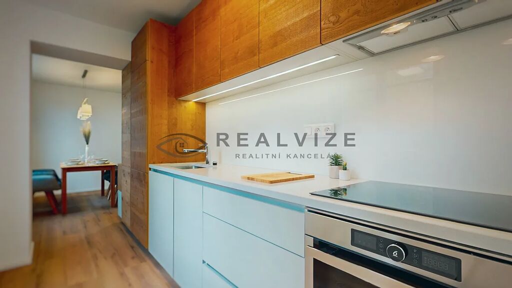 Interiér je částečně vybaven – k dispozici je moderní kuchyňská linka se spotřebiči, prostorný obývací pokoj a koupelna. Stačí jen doplnit ložnici a předsíň podle vlastního vkusu a můžete bydlet či pronajímat.