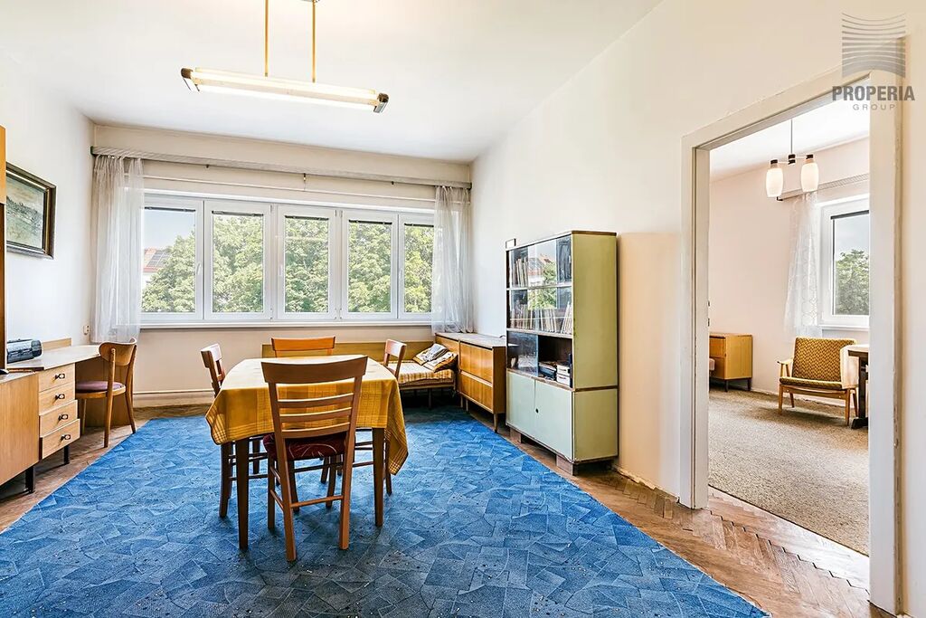 Prodej prvorepublikového bytu 3+1 v OV o CP 108 m2, ul. Tábor, Brno - Žabovřesky. Nachází ve 3. patře cihlového domu s novým výtahem, rozvody a střechou. Letos je v plánu realizovat s pomocí dotací, financí v FO a úvěru revitalizaci fasády se zateplením a nové zasklené lodžie. Byt je vzdušný, prostorný (94 m2), dobře dispozičně řešený s obrovským potenciálem k rekonstrukci dle vlastních představ. Je zde možnost začlenit obě lodžie do interiéru bytu a zvětšit si tak obytnou plochu na celých 108 m2. Také se nabízí vybourání příčky mezi kuchyní, spíží a komorou pro dosažení velké kuchyně s obývacím prostorem a vznikem nové dispozice 4+kk. Velkou předností bytu jsou dvě velké prosklené lodžie (7+7 m2) na 2 různé světové strany V,Z. Pokoje mají velkorysou metráž (21, 19, 19 m2), kuchyně s komorou 15 m2, předsíň 13 m2, koupelna 5,5 m2 - toaleta se nachází zvlášť, v chodbě je i praktická spíž. Dispozičně lze půdorys ještě dále upravovat. K bytu náleží suchý sklep. V této oblasti je možné si vyřídit parkování ve vnitrobloku ul. Pod Kaštany, kde nesmějí parkovat jiná auta než majitelů, dále jsou zde i klasické modré zóny pro rezidenty. Nachází se ve velmi vyhledávané lokalitě se zelení a volnočasovými aktivitami. V okolí jsou veškeré služby, obchody, hřiště a školy. Výborná dopravní dostupnost, do centra i pěšky pár minut. Osobní prohlídka kdykoli po domluvě s makléřkou.