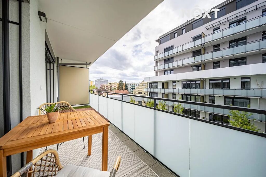 Velkou předností tohoto bytu je prostorná terasa, která nabízí příjemné místo pro odpočinek a posezení. K dispozici je také plně vybavená kuchyňská linka se spotřebiči, vestavné skříně a vlastní parkovací stání v domě (parklift). Samozřejmostí jsou i společné prostory – kolárna a úložné zázemí.