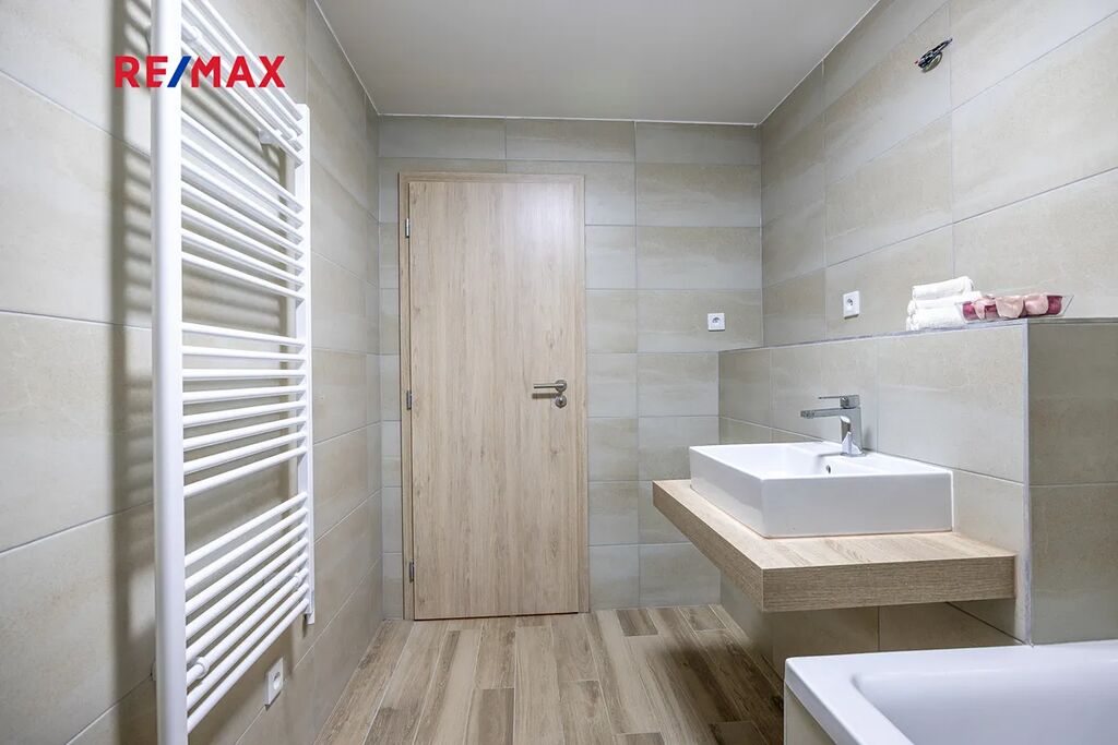 - Podlahové topení, elektrické žaluzie, vana v koupelně