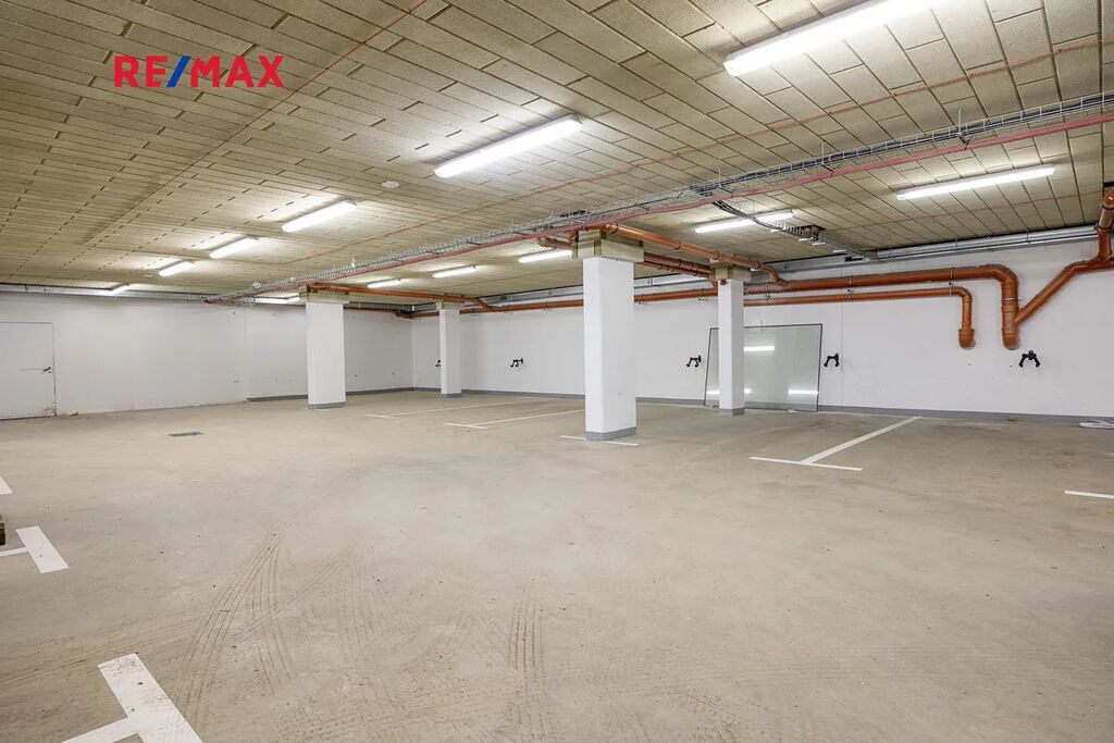 K bytu náleží garážové stání v suterénu domu, u kterého je závěsný systém pro jízdní kolo.