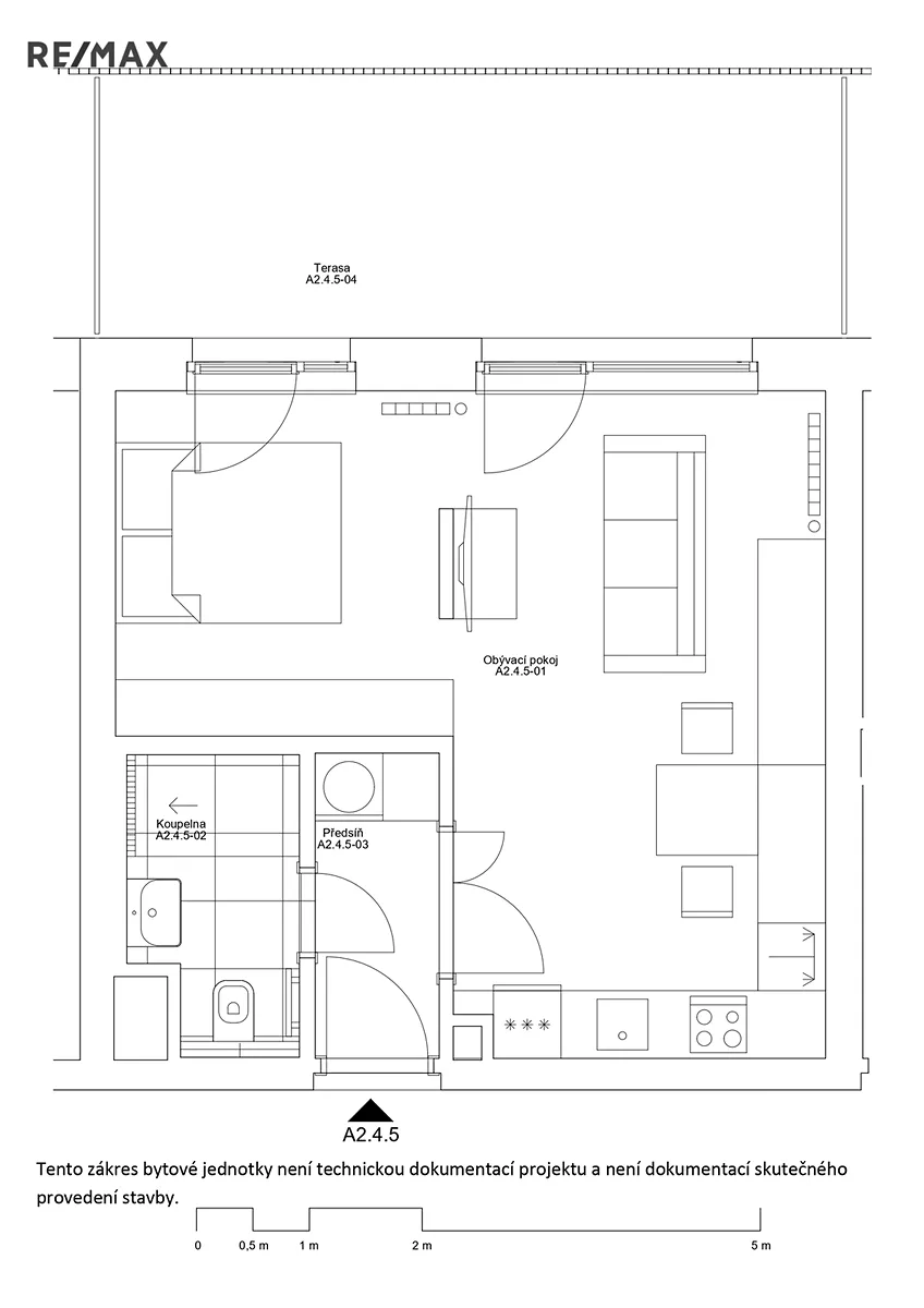 Plánovaný termín kolaudace již 6/2025. Byt je světlý a prostorný. Kuchyň a obývací pokoj tvoří otevřený prostor, ložnici lze snadno oddělit nejen pohledově, ale i příčkou a může vzniknout menší 2+kk. U oken je příprava pro instalaci externích elektromotoricky ovládaných žaluzií. Velká střešní terasa, na kterou je vstup z obývacího pokoje i z ložnice, je ideálním místem pro relaxaci či posezení s přáteli. Na terase je nezámrzný vývod vody pro zálivku zeleně, kterou si sem umístíte.
