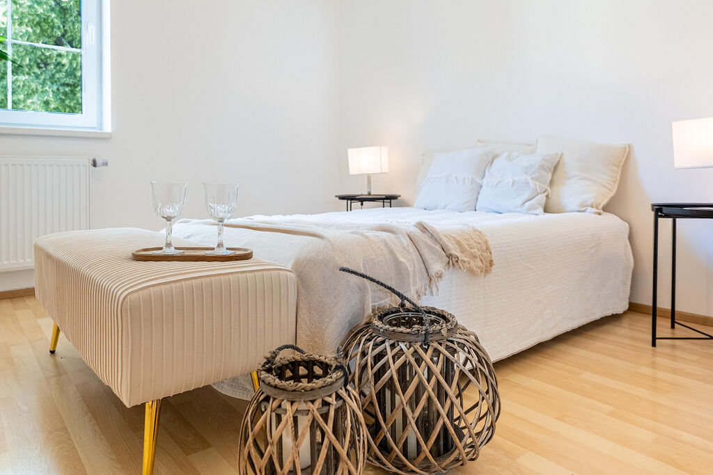 Dvě ložnice – klidná hlavní + pokoj pro děti / pracovnu / hosty.