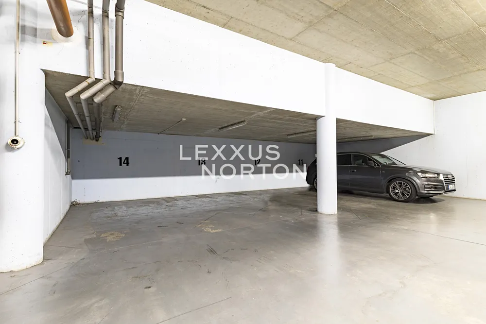 Byt disponuje třemi balkóny, které poskytují příjemné venkovní posezení. Součástí kupní ceny jsou tři velká garážová stání a sklepní kóje, přičemž veškeré prostory jsou pohodlně přístupné výtahem.