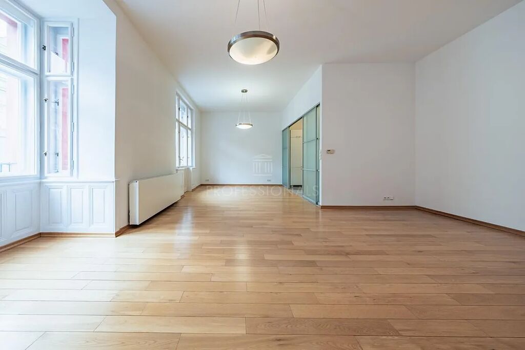 Nabízíme k pronájmu elegantní byt o velikosti 140 m², umístěný ve 3. nadzemním podlaží zrekonstruovaného činžovního domu z roku 1910 v žádané lokalitě pražských Vinohrad, v ulici Na Švihance.Byt zaujme svým původním art deco charakterem - vysokými stropy, renovovanými dřevěnými dveřmi a obložením - v kombinaci s moderním komfortem a vybavením.Dispozici tvoří prostorný obývací pokoj (45 m²) s jídelní částí, samostatná kuchyň přístupná posuvnými dveřmi, tři ložnice, dvě plně vybavené koupelny, vstupní hala, samostatná prádelna/komora a malý balkon orientovaný do klidného vnitrobloku.Kuchyně je plně vybavena vestavnými spotřebiči: myčka, velká lednice, samostatný mrazák, sklokeramická deska a trouba. V bytě se nacházejí vestavěné skříně, podlahy z tvrdého dřeva a žulové dlažby v koupelnách a kuchyni. Samozřejmostí je satelitní a kabelová televize, vysokorychlostní internet, nová elektroinstalace a rozvody.Dům prošel kompletní rekonstrukcí - nová fasáda, rozvody, výtah a podzemní garáže. Možnost pronájmu garážového stání za 5 000 Kč/měsíc.Perfektní lokalita jen pár kroků od Riegrových sadů, 5 minut chůze na metro, tramvaj i autobus a pouhých 10 minut pěšky do centra města.Ideální volba pro ty, kteří hledají nadstandardní byt v prestižní lokalitě s veškerým komfortem a skvělou dopravní dostupností.