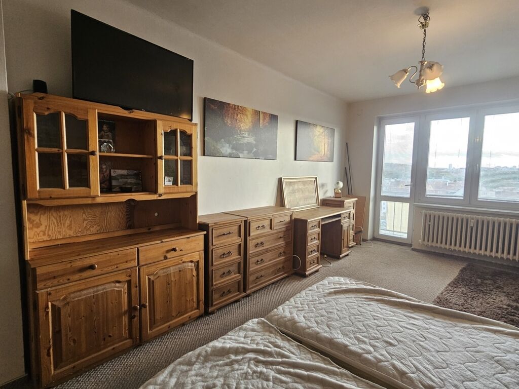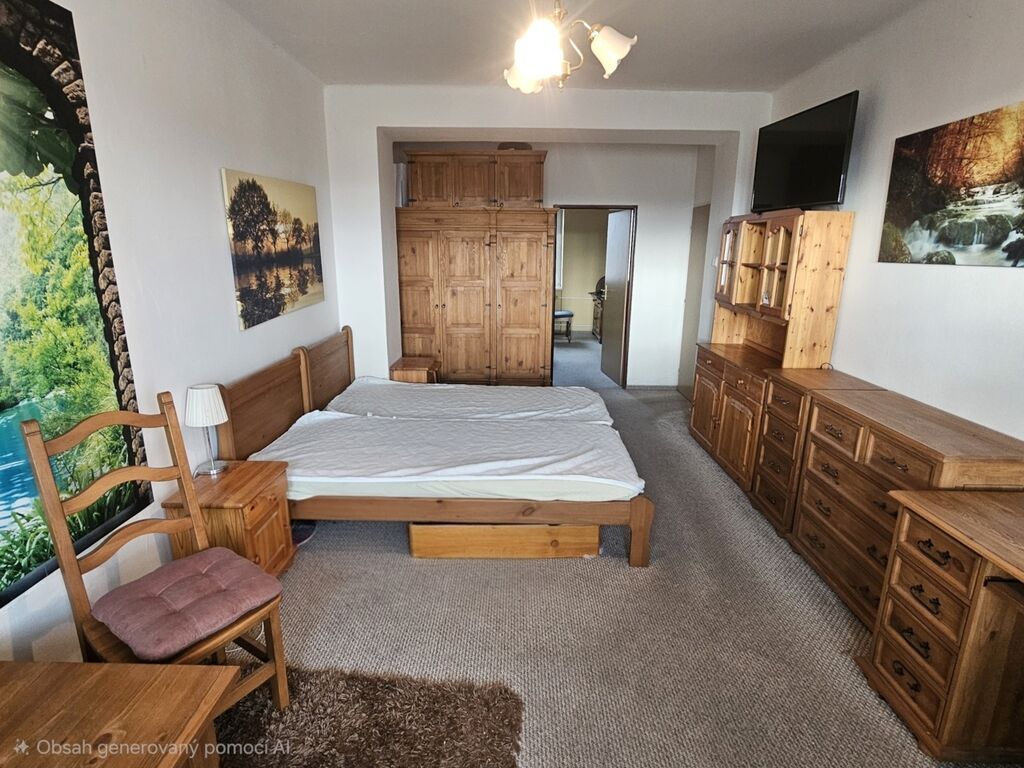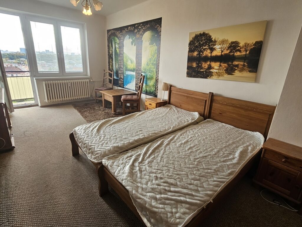 Byt sestává ze vstupní chodby, 2 samostatných pokojů (22 m2 a 14 m2), které mohou být vzájemně navíc průchozí, kuchyně, koupelny, WC a balkónu. Byt se nabízí kompletně zařízený kvalitním holandským nábytkem z masivu viz foto. Kuchyně je vybavena plynovým sporákem, lednici s mrazákem, nádobím a kuchyňské vybavením včetně el. odšťavňovače a rychlovarné konvice a vestavěnou pračkou. V koupelně je sprchový kout a umývadlo. Dále samostatné WC a vstupní chodba s vestavěnou šatní skříní a věšákovou stěnou se zrcadlem. Na podlaze je v obou pokojích koberec, v chodbě plovoucí podlaha, jinak dlažba. Okna jsou plastová se žaluziemi.