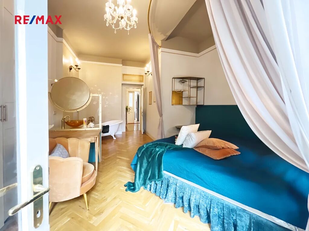 V srdci Prahy, kde se historie dotýká současnosti, nabízíme k prodeji výjimečný byt o celkové podlahové ploše 125 m², situovaný v elegantním secesním domě s výtahem. Tato nemovitost není jen o čtverečních metrech – je o prostoru, emocích, umění a výjimečnosti.