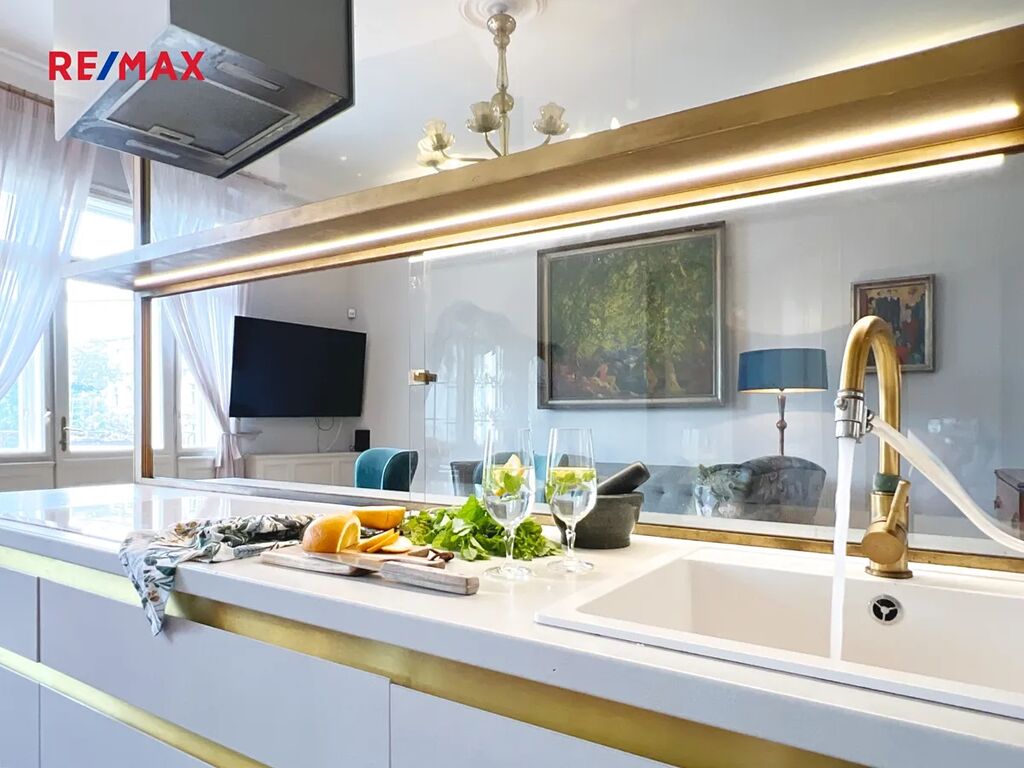 Celý byt prošel důmyslnou a citlivou rekonstrukcí, která respektuje původní architekturu a zároveň přináší komfort moderního života.