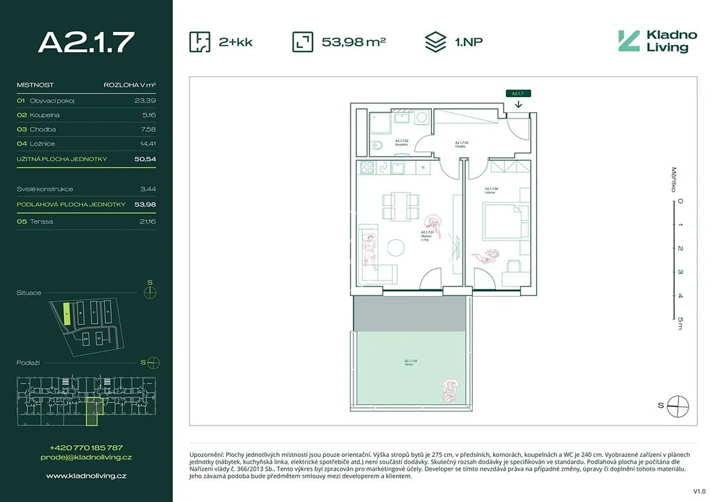 Nabízíme ke koupi moderní byt 2+kk o podlahové ploše 54 m² s terasou 21,2 m² v rezidenčním projektu Kladno Living, který vzniká v jedné z nejatraktivnějších lokalit města Kladno – Kročehlavy. Tento nový developerský projekt představuje jedinečnou příležitost pro ty, kteří hledají nové byty v Kladně nebo investici do nemovitosti s vysokým potenciálem zhodnocení.