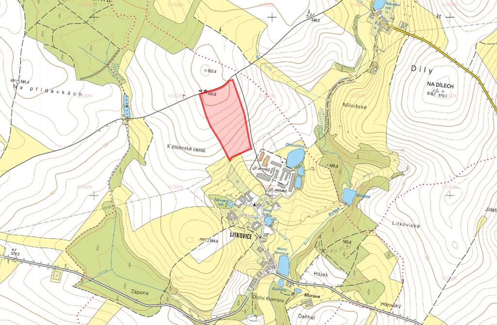 Ve výlučném vlastnictví nabízíme k prodeji rozlehlý zemědělský pozemek v katastrálním území Litkovice, obec Žirovnice, okres Pelhřimov. Pozemek je zapsán na listu vlastnictví č. 112 jako parcela č. 107/25. Druh pozemku: orná půda.