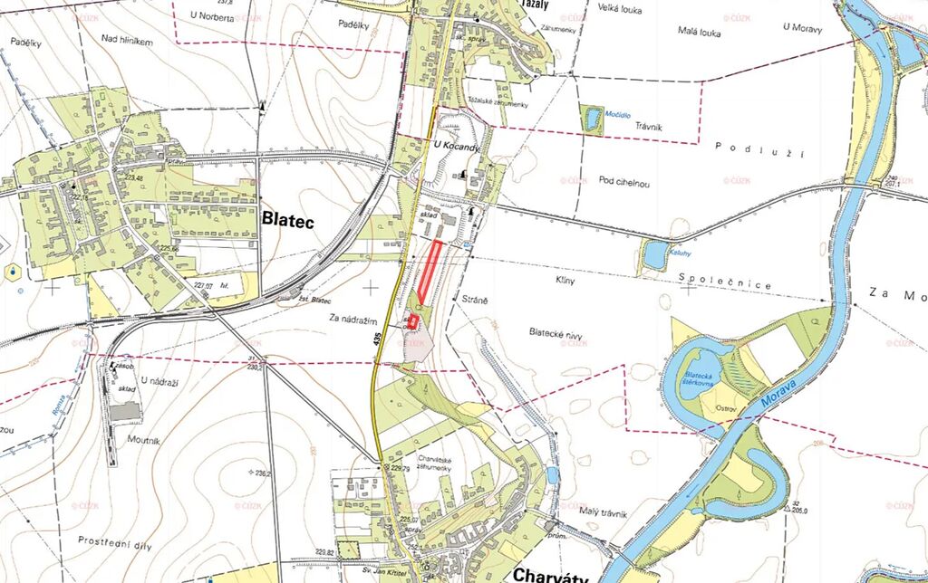 Pozemky se nacházejí v povodí řeky Moravy a díky tomu vynikají vysokou bonitou půdy – BPEJ činí 12,88 Kč/m².