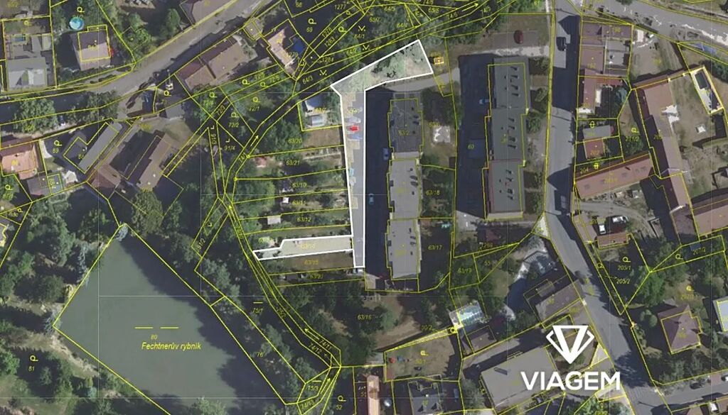 Jedná se o prodej 100% podílu, tedy držení pozemků ve výlučném vlastnictví. Jako podílová přístupová cesta je zde parcela 63/1.