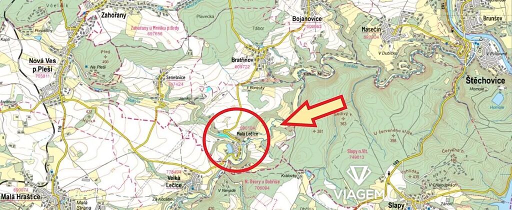 Pozemek se nachází na klidném okraji obce Malá Lečice a je přístupný cestou, která vede podél pozemku. Svojí klidnou polohou, jednoduchou přístupností a snadnou dostupností centra hlavního města Prahy je parcela skvělou investiční příležitostí. Pozemek lze využívat jako zahradu nebo vinici. Zároveň se jedná o ideální místo pro mobilheim nebo maringotku.