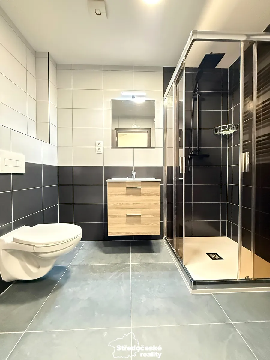 Nabízím k pronájmu nový slunný byt 1+kk (č. 103) s terasou a dvěma venkovními parkovacími stáními v novostavbě z roku 2024, která se nachází v klidné části Uhlířských Janovic.