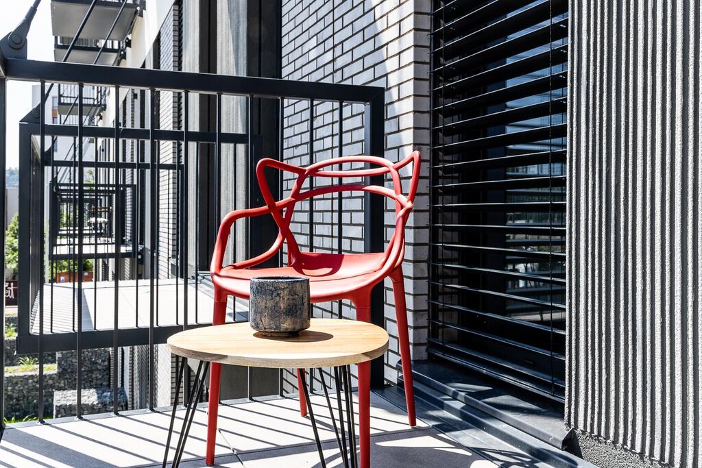 Klidný, slunný byt v nové rezidenci SO-HO v pražských Holešovicích o dispozici 1+kk (49 m2) s balkonem (4 m2) se nachází ve 2. patře průmyslového nízkoenergetického domu Tesla.