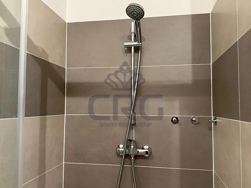 Celková výměra obývacího pokoje s kuchyní je cca 23,45m2. Z obývacího pokoje je vstup na terasu o výměře cca 7,23 m2, která má nádherný výhled do okolí. Na terasu je také možno vyjít z dalšího pokoje o celkové ploše cca 15,18 m2, která má taktéž klimatizaci v pokoji. V bytě je koupelna o výměře 7,91m2, jejíž součástí je sprchový kout, umyvadlo, přívod na pračku či sušičku a WC.