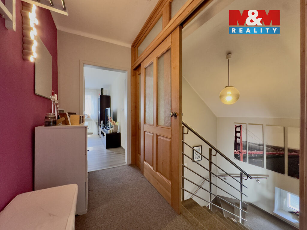 Nabízíme k prodeji dvougenerační RD, nacházející se v obci Hať, poblíž Česko-Polské hranice. Dům prošel v letech 2015 a 2019 nákladnou rekonstrukcí exteriéru i interiéru. Patra jsou propojena betonovým schodištěm a v každém se nachází samostatná bytová jednotka, 4+kk a 4+1. Byt. jednotka v 2NP je opatřena posuvnými dveřmi a skýtá dostatek soukromí. Vytápění a ohřev vody zajišťuje kondenzační kotel, ve 2NP také el. bojler. Kuchyně jsou vybaveny vestavěnými spotřebiči, které jsou součástí prodeje. Dům disponuje udržovaným suterénem s dílnou, kotelnou, prádelnou a letní kuchyní. Zděná garáž má parkovací kapacitu pro dva vozy. Pozemek, s udržovanou zahradou, je oplocený a noví majitelé jistě ocení el. bránu s d.o. pro pohodlný příjezd. V obci naleznete MŠ, ZŠ, poštu, obchody, zastávky autobusu s přímým spojem do Hlučína, což jistě přispívá ke komfortu bydlení. Dům je ve výborném stavu a kupující se mohou nastěhovat bez dalších investic na jaře 2026. Více informací Vám sdělíme na prohlídce