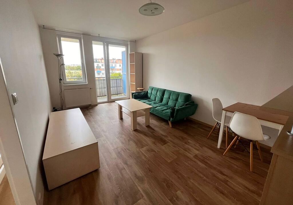 Prostorný obývací pokoj s jídelní zónou a vstupem na balkon. Ložnice s velkou vestavěnou skříní a dvoulůžkem. Byt je situován ve 4. nadzemním podlaží moderního domu s výtahem. Koupelna je samostatná, vybavená pračkou, WC je oddělené.