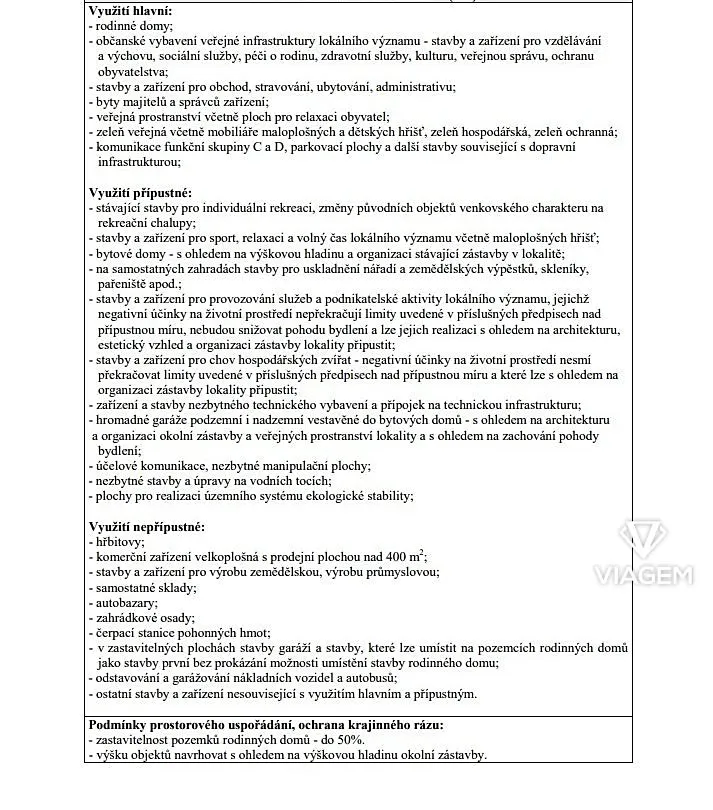 Možnosti využití pozemků jsou dány územní plánem, který předurčuje pozemky pro rekreační zástavbu se specifikací “SO - plochy smíšené obytné”.
