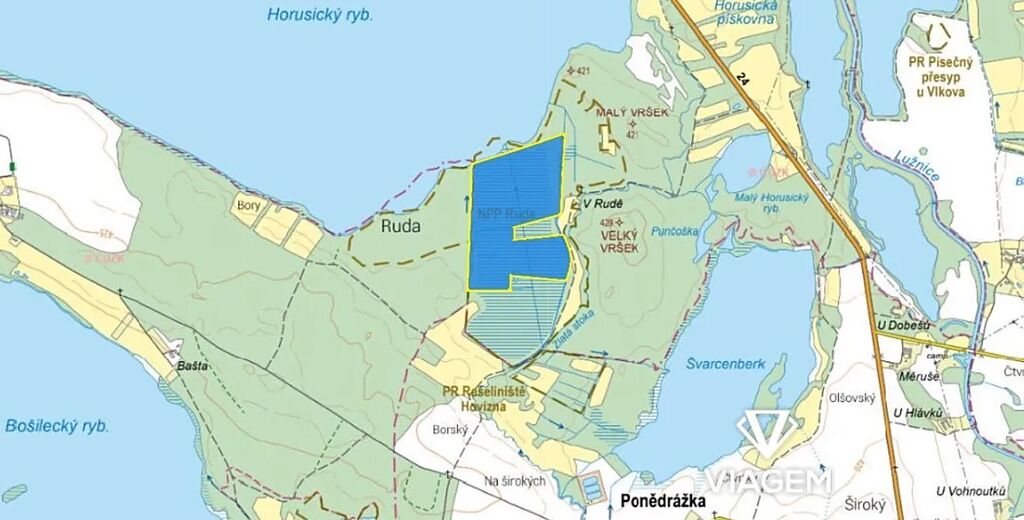 Pozemek se nachází v přímé blízkosti Horusického rybníku a je přístupný cestou, která je zároveň součástí pozemku. Svojí jedinečnou polohou v srdci krásných třeboňských rybníků jsou pozemky domovem pro nejcennější druhy rostlin a živočichů. Příkladem může být malá orchidej hlízovec loeselův nebo motýl bělopásek tavolníkový.