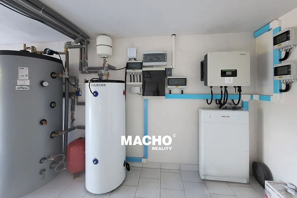 Stavba je cihlová, zateplená polystyrenem, přičemž střecha je izolována čedičovou vatou. Stropy v horním patře a střecha zimní zahrady mají dodatečnou izolaci polystyrenem. Okna byla vyměněna za plastová s izolačním dvojsklem, v podkroví jsou střešní okna Velux. Garážová vrata rovněž prošla výměnou za systém Hormann. Energetická náročnost domu je A - Mimořádně úsporná. Vytápění je řešeno tepelným čerpadlem vzduch-voda a fotovoltaickými panely 10kWp s bateriovým úložištěm. Voda je z obecního vodovodu, kanalizace veřejná tlaková. K dispozici je také bývalá jímka o objemu 11 m³, nyní sloužící ke sběru dešťové vody. Dům je připojen na plyn, ten ale není v současné době využíván. Na pozemku je praktický zahradní altán.