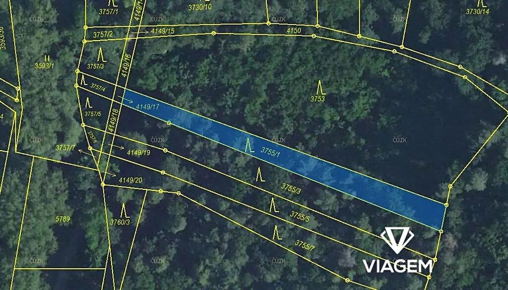 Pozemky mají celkovou rozlohu 700 m2. Zapsány jsou na LV 970 pod parcelními čísly 3755/1, 3757/4 a 4149/17. Jedná se především o lesní pozemky o výměře (687)m2, dále pak o ostatní plochu (13 m2).