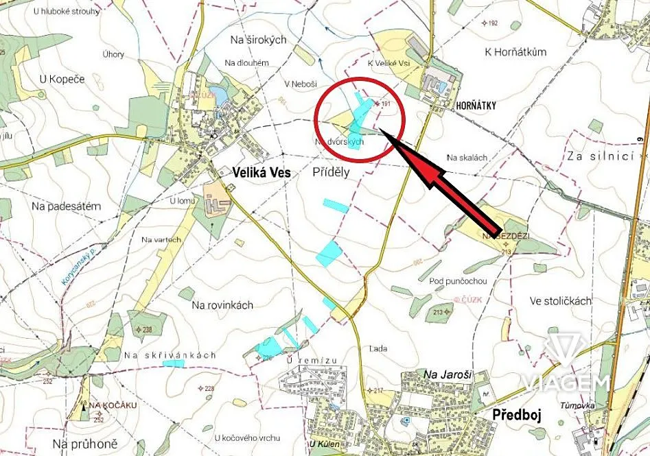 Prodej podílu pole, Veliká Ves, 3652 m2 (ID: 1869169)