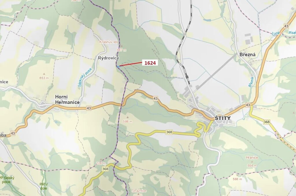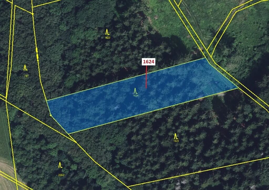 Lesní pozemek o výměře 3756 m2, parcelní číslo 1624, podíl 1/1, katastrální území Štíty-město, obec Štíty, obec s rozšířenou působností Zábřeh, okres Šumperk, Olomoucký kraj. Po těžbě.
