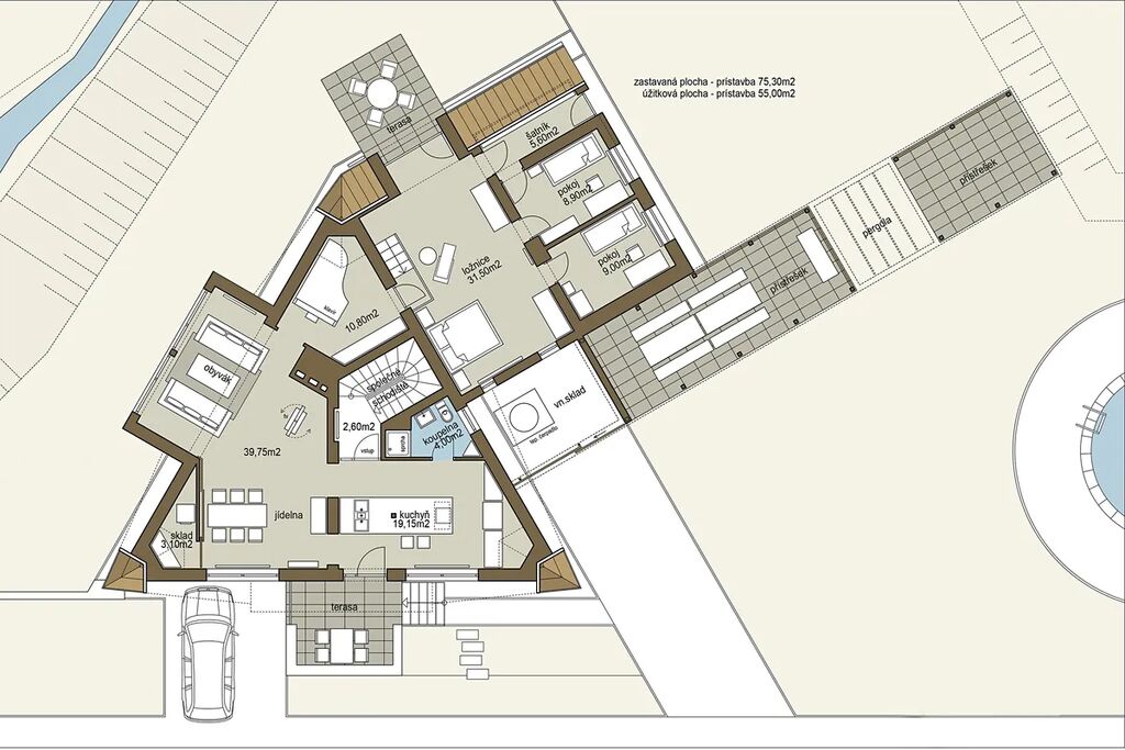 Vila Anna je mistrovským dílem uznávaného architekta Jaroslava Kopeckého, která spojuje eleganci, komfort a moderní technologie v harmonickém souladu. Tato výjimečná nemovitost nabízí užitnou plochu 431 m2 a rozkládá se na rozsáhlém pozemku o velikosti 7 350 m2, což zaručuje naprosté soukromí a klid.