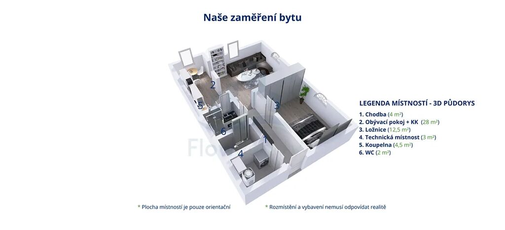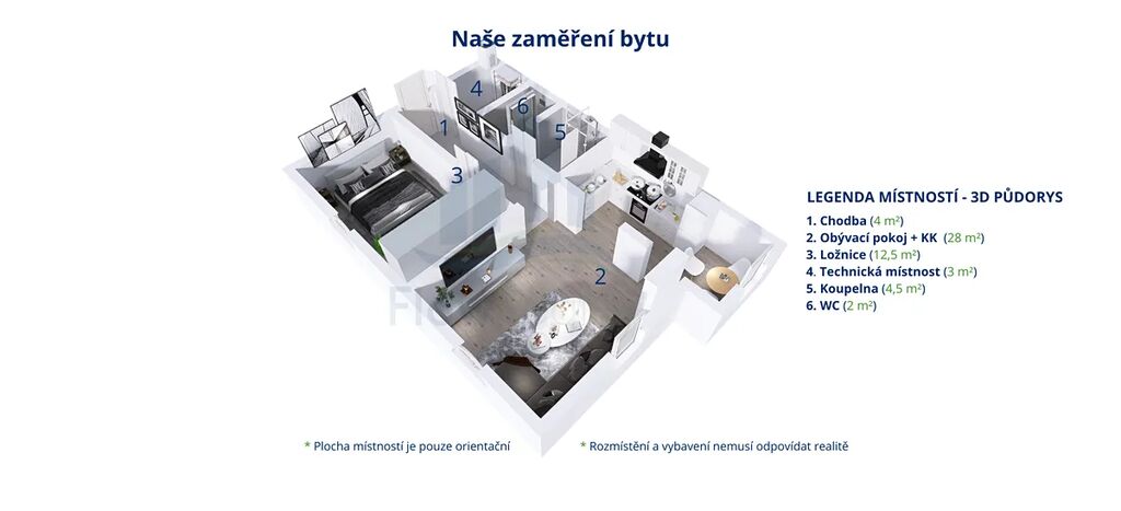 Byt je kompletně vybavený. Stačí jen pár dodělávek v obýváku.
