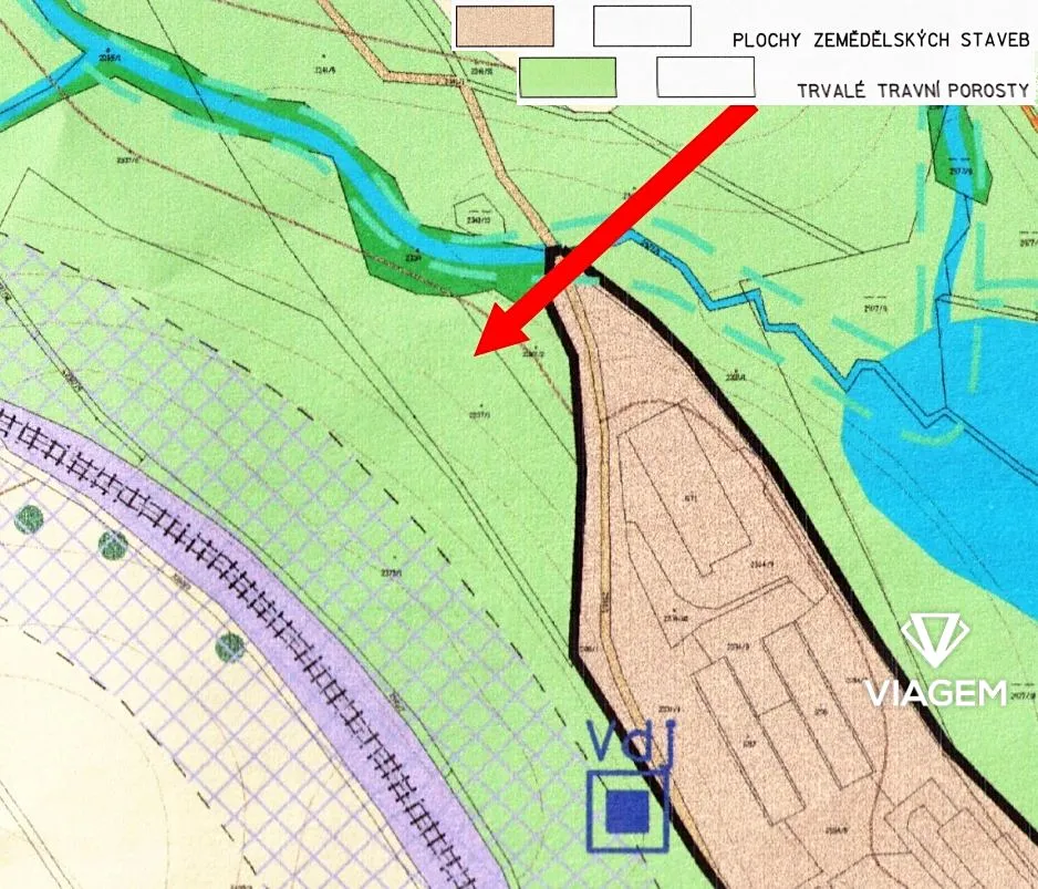 - Parcelní číslo 3185 (1717 m², 17% podíl = 286 m², koryto vodního toku přirozené nebo upravené)