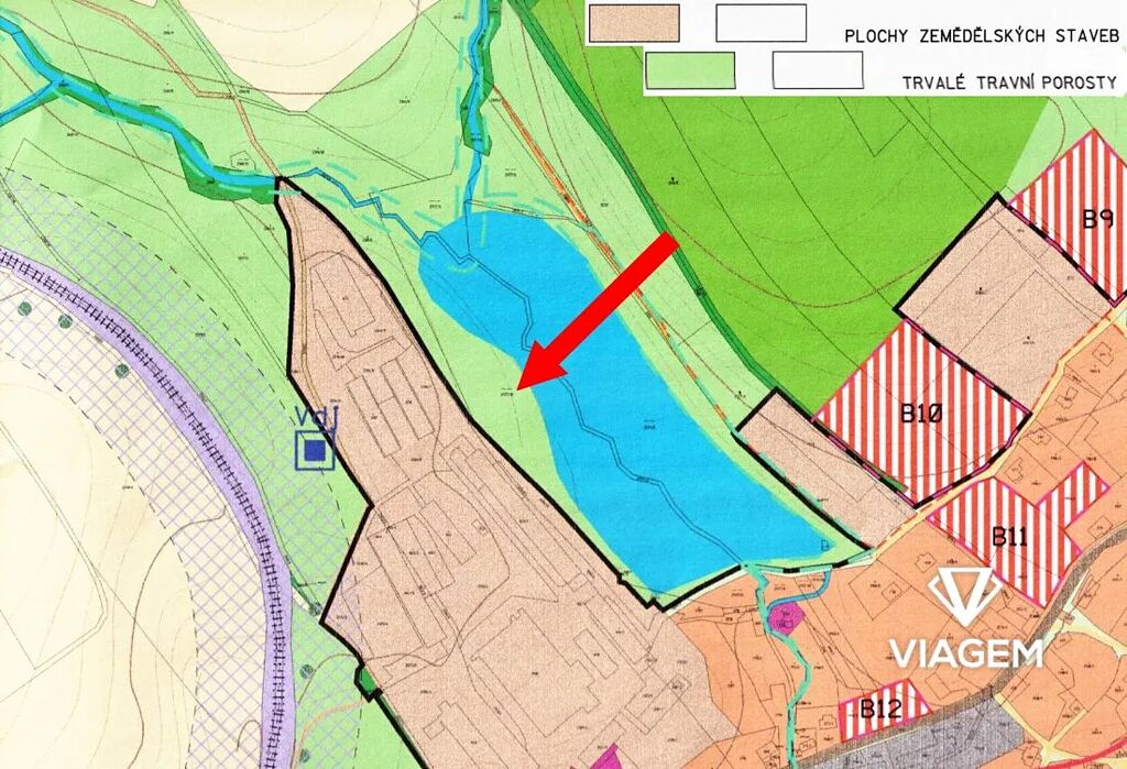 - Parcelní číslo 3197 (8500 m², 17% podíl =1417 m², trvalý travní porost)