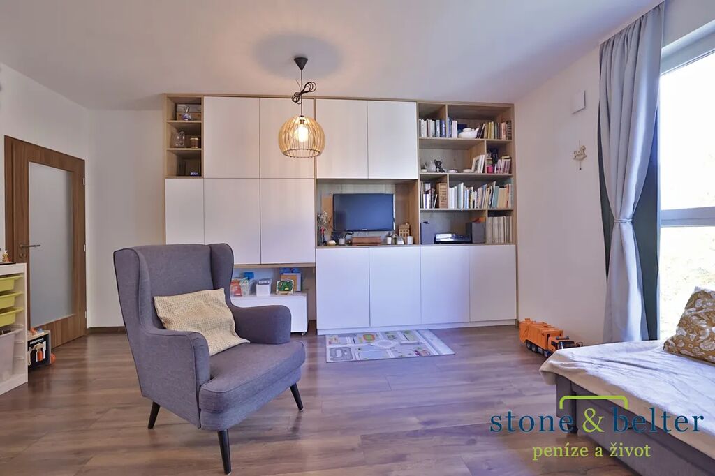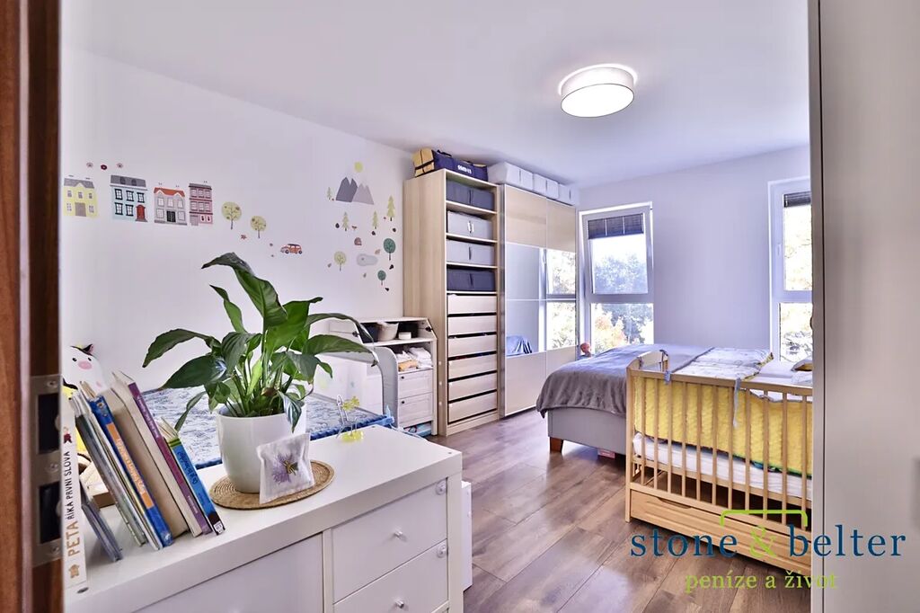 Velká francouzská okna nabízejí uklidňující výhled do zeleně a v kombinaci s orientací bytu na jihozápad zajišťují dostatek denního světla po celý den. Byt působí světlým a vzdušným dojmem. Tepelnou pohodu zajišťuje podlahové topení umístěné pod plovoucí vinylovou podlahou, která díky realistickému vzhledu dřeva dodává interiéru útulný a zároveň elegantní charakter. Vkusně zařízená koupelna a kuchyň vybavená kvalitními spotřebiči již jen podtrhují příjemnou atmosféru.