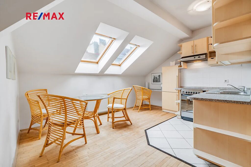 Byt působí velmi světlým a příjemným dojmem díky střešním oknům, která přivádějí do interiéru dostatek denního světla. Dominantou bytu je obývací prostor s kuchyňským koutem, vybavený kuchyňskou linkou včetně spotřebičů a jídelní částí. Ložnice je samostatná, tichá a nabízí dostatek soukromí. Koupelna je vybavena sprchovým koutem a toaletou.